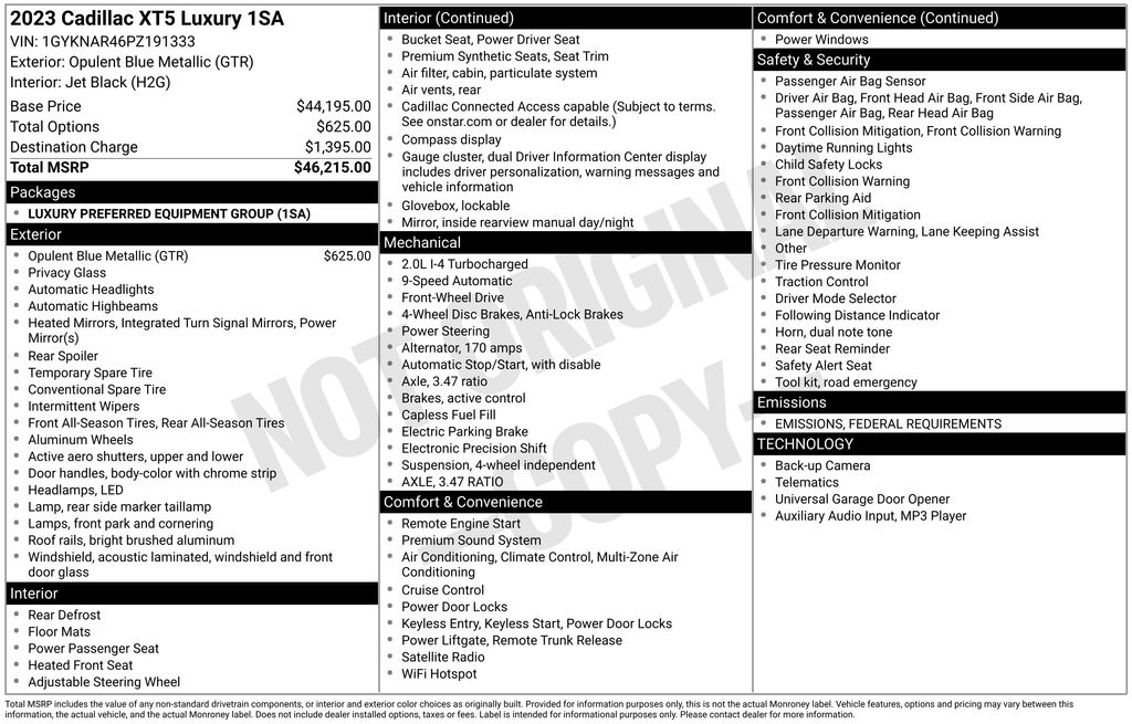 - Emergency communication system: OnStar and Cadillac connected services capable