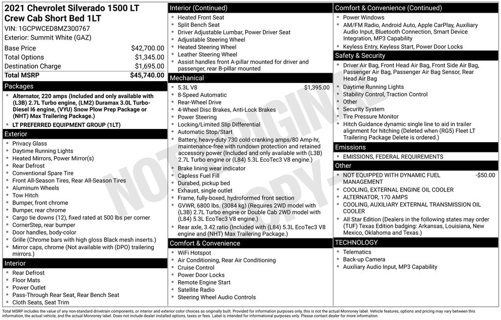 New Price! Priced below KBB Fair Purchase Price! 8-Speed Automatic, Black Cloth. Summit White 2021 Chevrolet Silverado 1500 LT