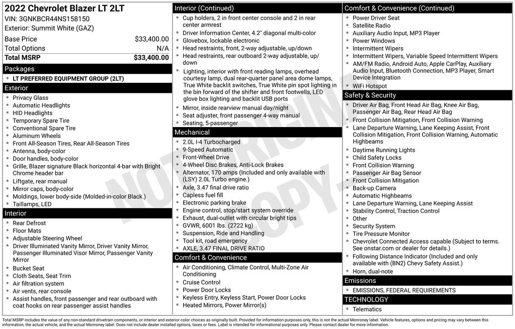 CARFAX One-Owner. Priced below KBB Fair Purchase Price! Odometer is 3045 miles below market average! Summit White 2022 Chevrolet Blazer LT