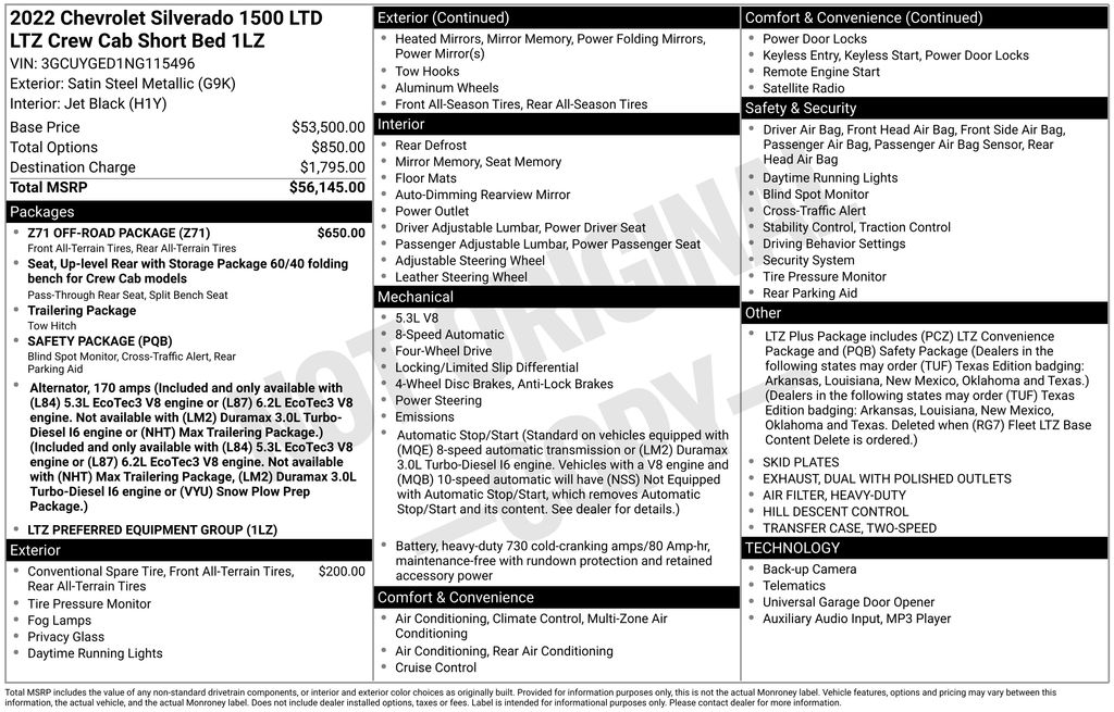 Odometer is 1934 miles below market average! 2022 Chevrolet Silverado 1500 LTD LTZ in Steel Metallic vehicle highlights include, **ALLOY WHEELS**, **LEATHER**, **Volvo Certified Pre-Owned**, **KEYLESS ENTRY**, **BACK UP CAMERA**, ** MULTI FUNCTION STEERING WHEELS**, *PREMIUM SOUND SYSTEM**, **KEYLESS START**, **MANY MORE OPTIONS**. Steel Metallic 2022 Chevrolet Silverado 1500 LTD LTZ