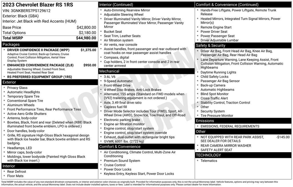 Clean CARFAX. Priced below KBB Fair Purchase Price! Odometer is 6190 miles below market average! Black 2023 Chevrolet Blazer RS