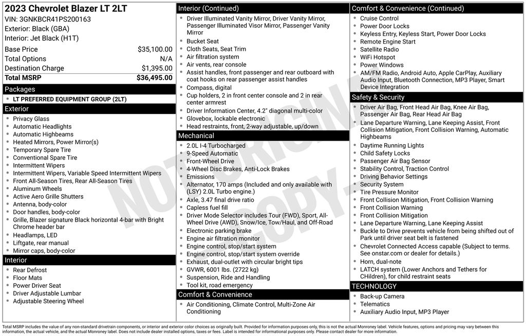 CARFAX One-Owner. Priced below KBB Fair Purchase Price! 2023 Chevrolet Blazer LT in Black vehicle highlights include, **ONE OWNER**, **ALLOY WHEELS**, **BACK UP CAMERA**, *PREMIUM SOUND SYSTEM**, **KEYLESS START**, **MANY MORE OPTIONS**. Black 2023 Chevrolet Blazer LT