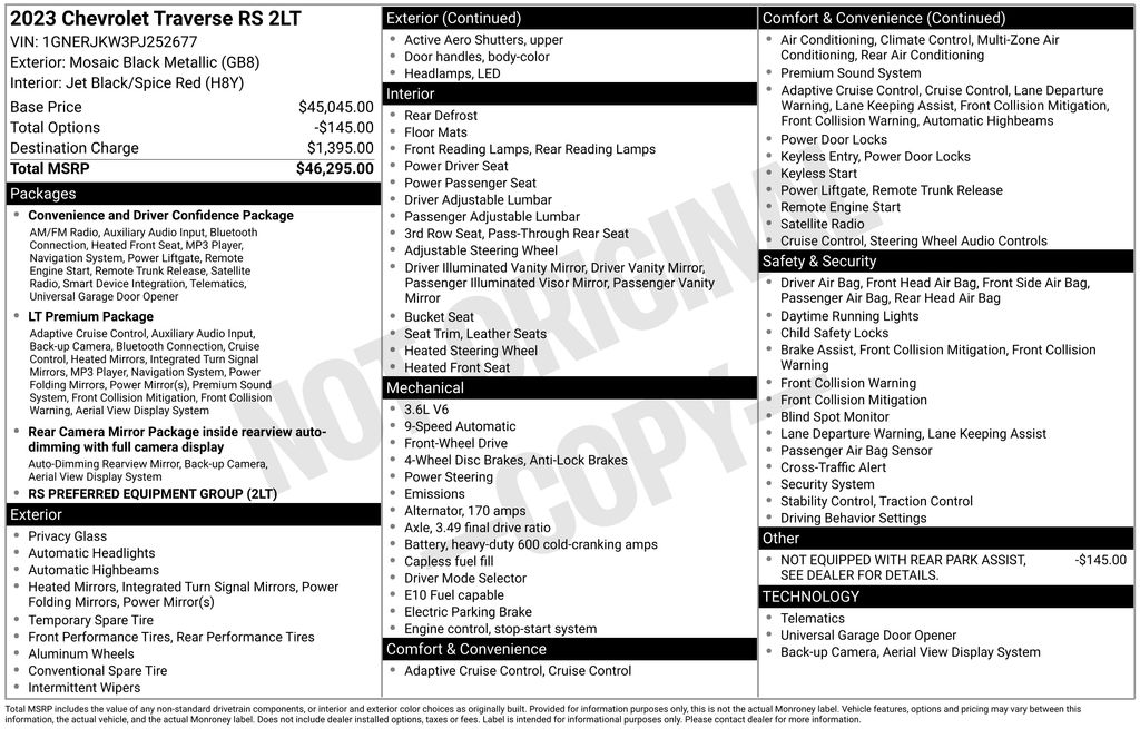 Recent Arrival! CARFAX One-Owner. Clean CARFAX. 2023 Chevrolet Traverse RS in Mosaic Black Metallic vehicle highlights include, **CLEAN CARFAX**, **ONE OWNER**, **THIRD ROW SEATING**, **POWER LIFT GATE**, **ALLOY WHEELS**, **LEATHER**, **KEYLESS ENTRY**, **MULTI-ZONE CLIMATE CONTROL**, **REAR A/C**, **BACK UP CAMERA**, **POWER SEATS**, **SECOND ROW BUCKET SEATS**, ** MULTI FUNCTION STEERING WHEELS**, **SATTALITE RADIO**, **REMOTE START**, *PREMIUM SOUND SYSTEM**, **REAR PARKING AID**, **KEYLESS START**, **MANY MORE OPTIONS**. Mosaic Black Metallic 2023 Chevrolet Traverse RS