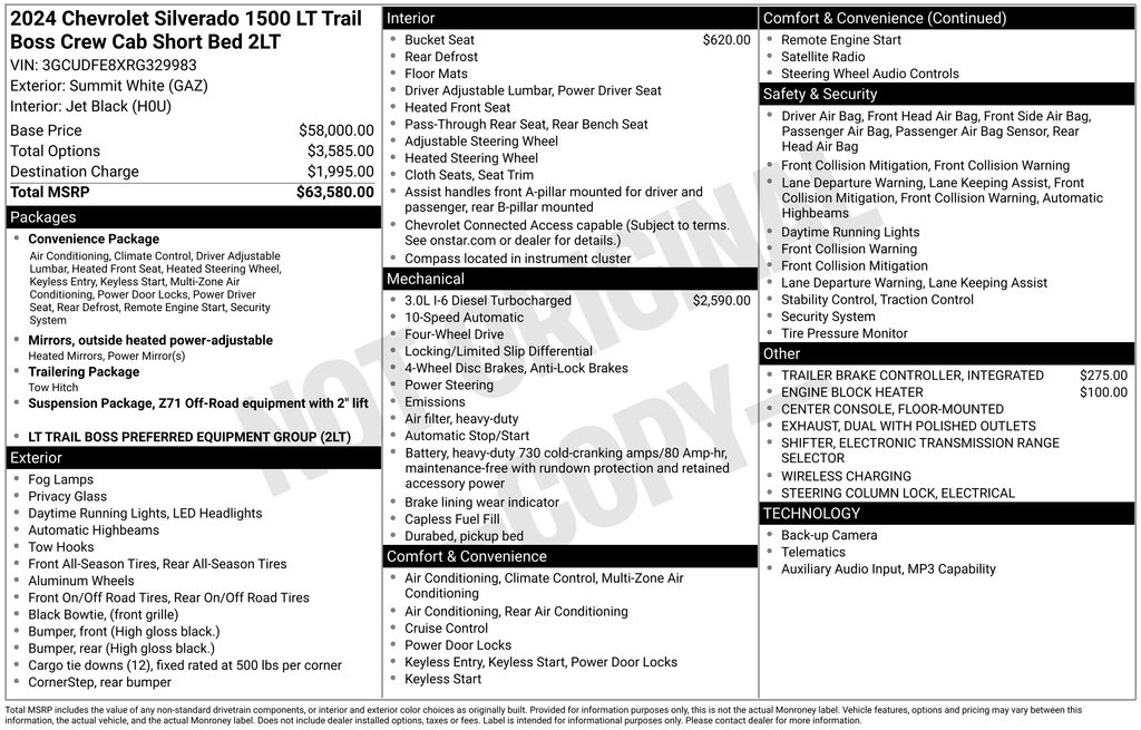 CARFAX One-Owner. Priced below KBB Fair Purchase Price! Odometer is 3374 miles below market average! 10-Speed Automatic, 4WD, Black Cloth. Summit White 2024 Chevrolet Silverado 1500 LT Trail Boss
