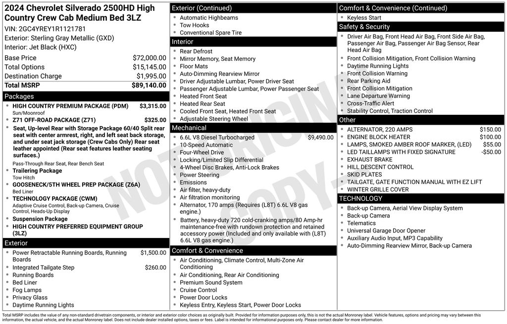 Recent Arrival! CARFAX One-Owner. Clean CARFAX. Priced below KBB Fair Purchase Price! Odometer is 14378 miles below market average! 2024 Chevrolet Silverado 2500HD High Country in Sterling Gray Metallic vehicle highlights include, **CLEAN CARFAX**, **ONE OWNER**, **STILL UNDER FACTORY WARRANTY**, **ALLOY WHEELS**, **LEATHER**, **KEYLESS ENTRY**, **MULTI-ZONE CLIMATE CONTROL**, **BLUETOOTH**, **BACK UP CAMERA**, **POWER SEATS**, ** MULTI FUNCTION STEERING WHEELS**, **20" WHEELS**, **SATTALITE RADIO**, *PREMIUM SOUND SYSTEM**, **REAR PARKING AID**, **RUNNING BOARDS**, **BED LINER**, **KEYLESS START**, **MUCH MORE**, 10-Speed Automatic, 4WD, Jet Black Leather. Sterling Gray Metallic 2024 Chevrolet Silverado 2500HD High Country