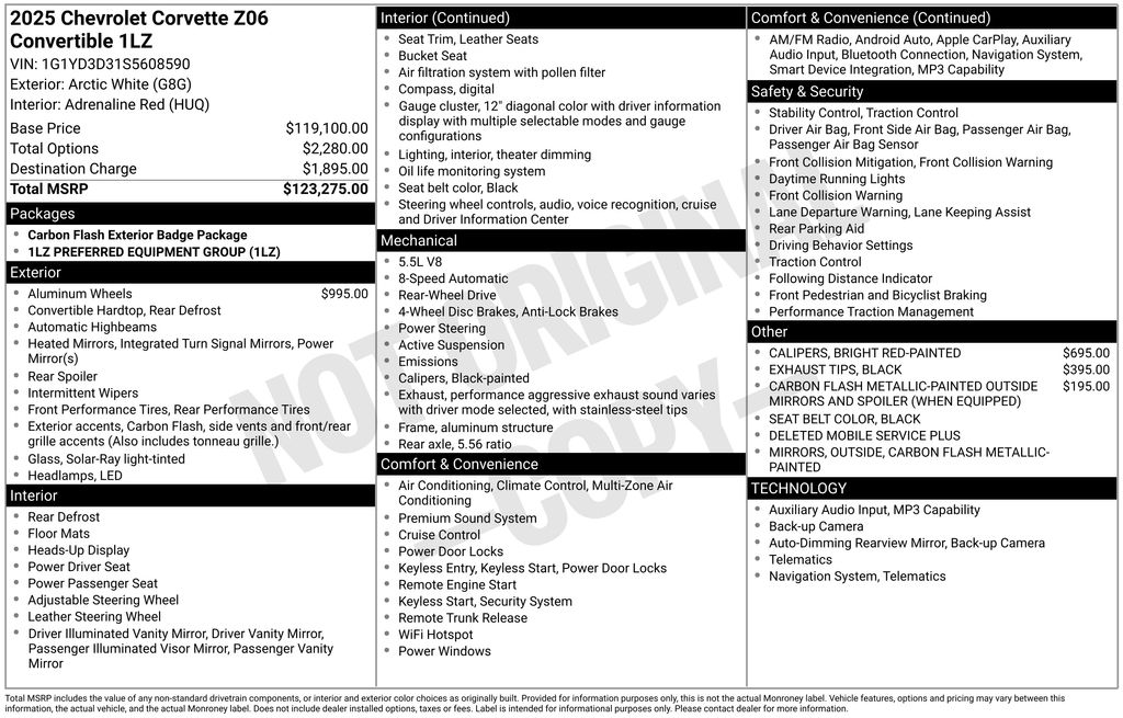 Recent Arrival! CARFAX One-Owner. Clean CARFAX. 2025 Chevrolet Corvette Z06 in Arctic White vehicle highlights include, **CLEAN CARFAX**, **ONE OWNER**, **STILL UNDER FACTORY WARRANTY**, **ALLOY WHEELS**, **LEATHER**, **KEYLESS ENTRY**, **MULTI-ZONE CLIMATE CONTROL**, ** MULTI FUNCTION STEERING WHEELS**, *PREMIUM SOUND SYSTEM**, **REAR PARKING AID**, **KEYLESS START**, **MUCH MORE**. Arctic White 2025 Chevrolet Corvette Z06