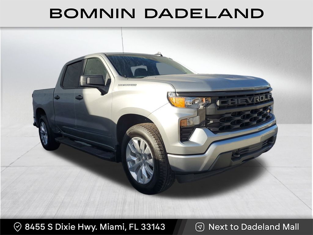 Clean CARFAX. Priced below KBB Fair Purchase Price! Odometer is 5479 miles below market average! 2025 Chevrolet Silverado 1500 Custom in Silver Ice Metallic vehicle highlights include, **CLEAN CARFAX**, **ALLOY WHEELS**, **KEYLESS ENTRY**, ** MULTI FUNCTION STEERING WHEELS**, *PREMIUM SOUND SYSTEM**, **REAR PARKING AID**, **RUNNING BOARDS**, **MANY MORE OPTIONS**, 8-Speed Automatic, Gideon/Very Dark Atmosphere w/Cloth Seat Trim. Silver Ice Metallic 2025 Chevrolet Silverado 1500 Custom