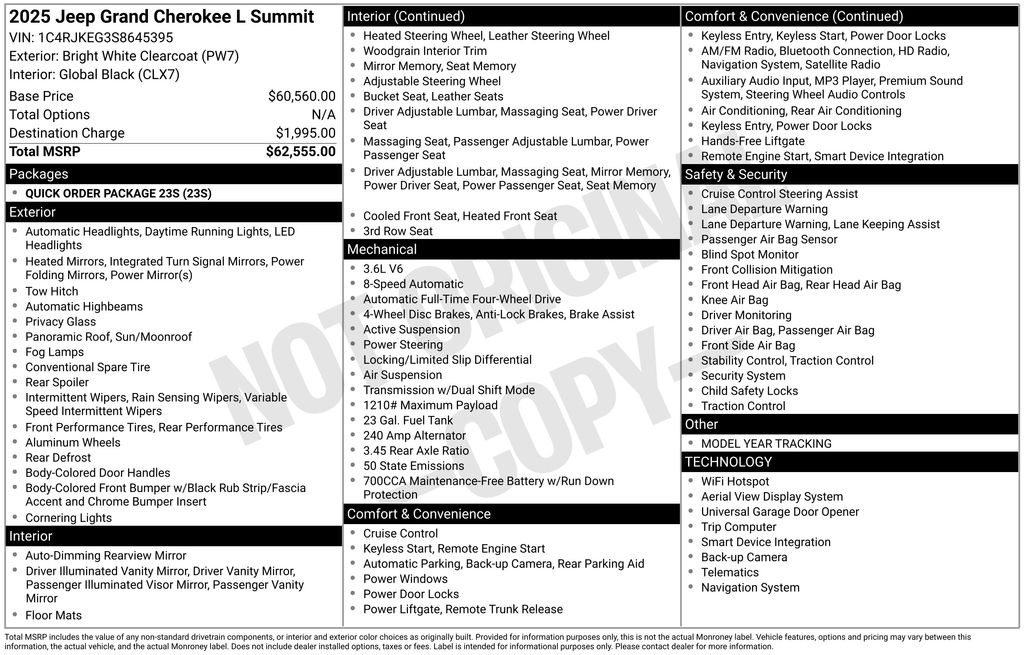 CARFAX One-Owner. Clean CARFAX. Odometer is 9036 miles below market average! Bright White Clearcoat 2025 Jeep Grand Cherokee L Summit