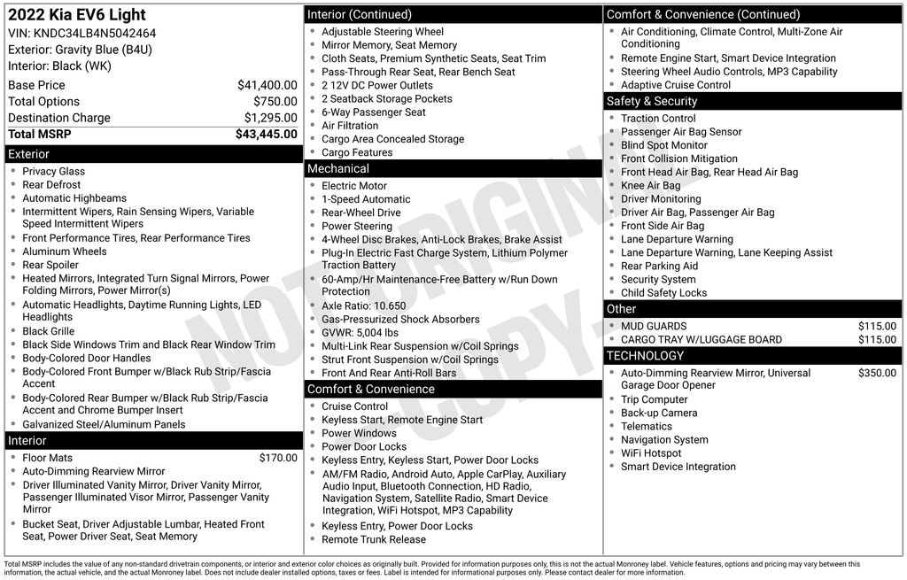 - Tracker system: Kia Connect - Stolen Vehicle Recovery