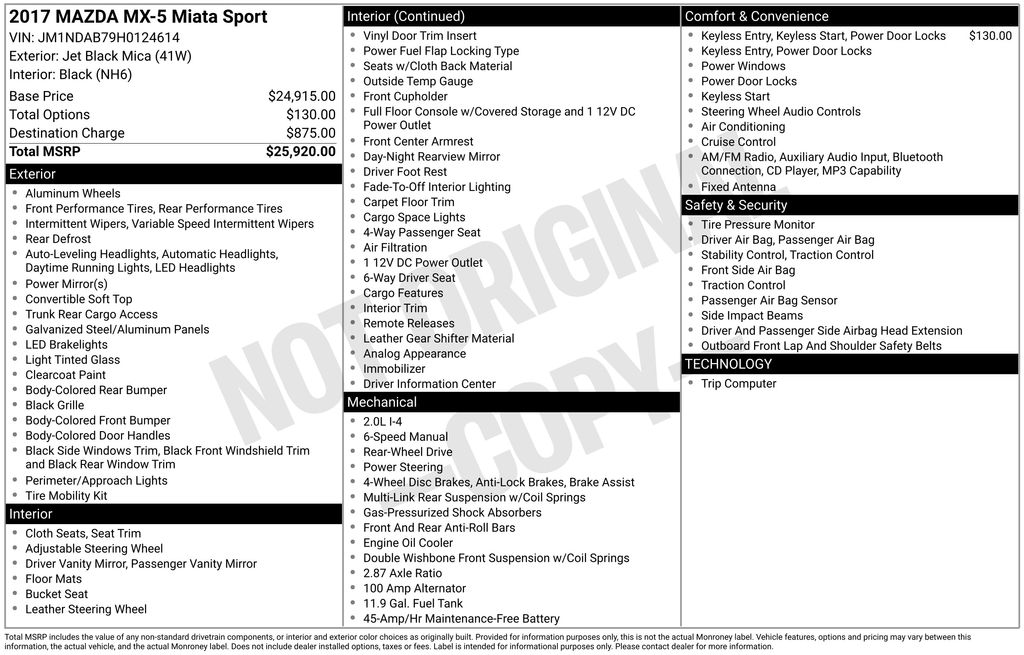 Black Cloth. Jet Black Mica 2017 Mazda Miata Sport