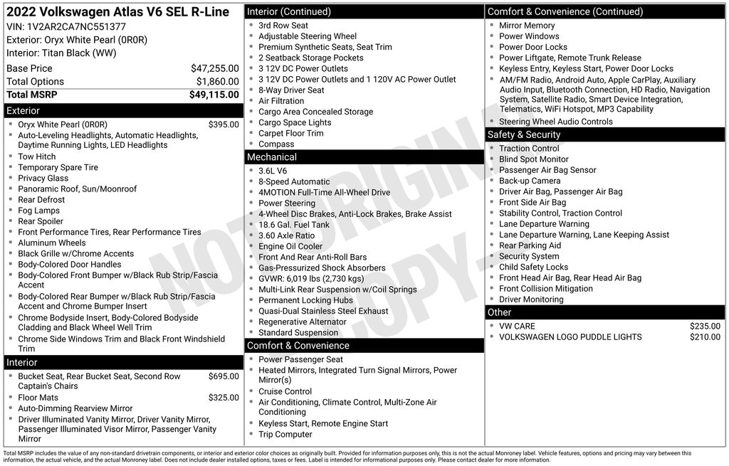 2022 Volkswagen Atlas 3.6L V6 SEL R-Line